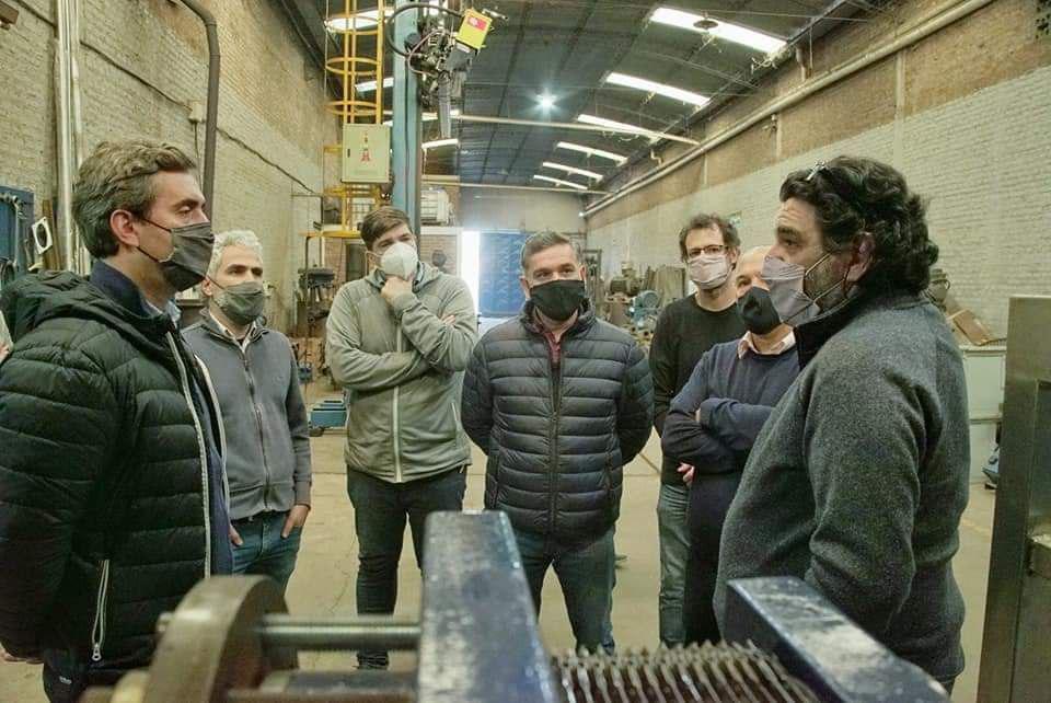 El presidente de la Asociación de Empresarios y Empresarias Nacionales para el Desarrollo Argentino (ENAC), Leo Bilanski; junto al intendente de Luján, Leo Boto; el subsecretario de Producción y Desarrollo Sustentable, Daniel Lanson y el responsable de la Oficina de Comercio Exterior, Ricardo Piaggio, recorrieron la fábrica Frio Ingeniería del empresario Marcelo Barbani, en el partido de Luján, provincia de Buenos Aires.